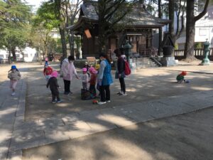 今日はもも組さんとたんぽぽ組さんと神社公園の広場に行きました!!