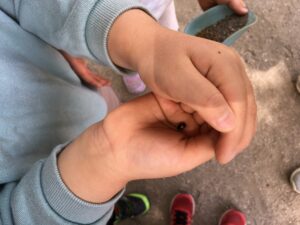先生に「きのう、えほんでよんでた、てんとうむしみつけたよー」と手のひらにてんとう虫を🐞乗せて見せてくれました!