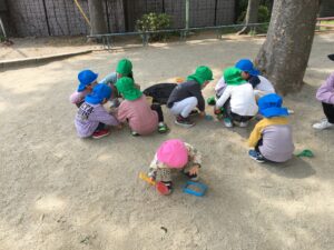 その後、もも組さんも本町公園に遊びに来てお砂場セットを借りて楽しく遊んでいた