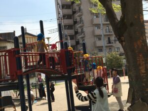 朝から、鬼ごっこやゾンビごっこをしたいと言っていたすみれ組さん公園に着くと、
