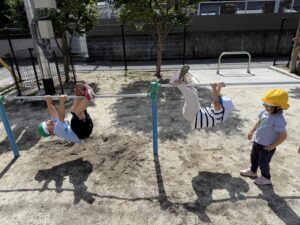 他にも鉄棒で出来る技を披露してくれたり乗り物遊具で楽しく遊んだり