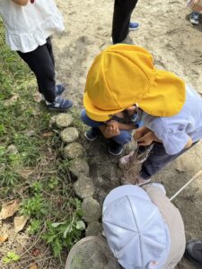 「寒そうだからお家作ろうね」とナメクジに藁のお家を作ってあげるこども達もいました!