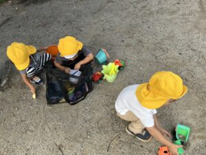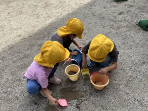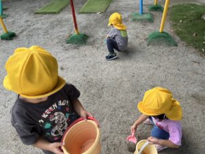 その間、3歳児さんは木陰で砂遊び⛱️を楽しみました。