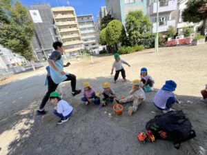 と嬉しそうに教えてくれたり、砂で作ったアイスクリーム🍦を「先生どうぞ!」と渡してくれる子もいて、とてもかわいらしかったです💓