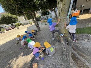 と公園の中やお友達、保育者の身につけているものを一生懸命探しながら楽しんでいました🎶