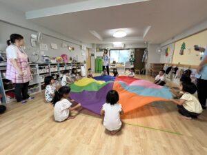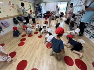 保育者の話をしっかり聞きながら、どの種目にも一生懸命取り組む子どもたちの姿が見られました😊🎌