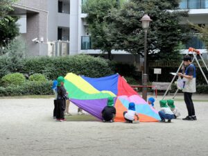 そのあとは、あお帽子さんとみどり帽子さんでパラバルーンの練習をしました🎈