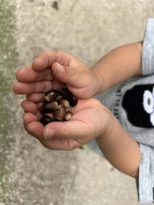どんぐりがたくさん落ちていて手のひらいっぱいに集めて見せてくれたり、
