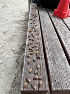 ベンチに沢山の並べたりと秋ならではの遊びも楽しめました😊