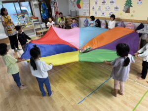 3歳児さんのダンスでは、4・5歳児さんが一緒に練習してくれていることもあり、恥ずかしさが少しずつなくなってきています🎵