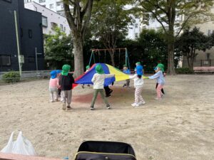最初に、4・5歳児さんはパラバルーンの練習をしました🎈