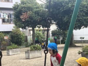 ブランコでは「もっと高くして〜!」「先生、押して〜!」と元気な声が響き、