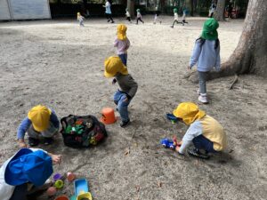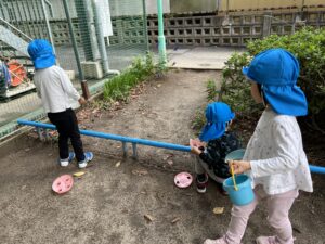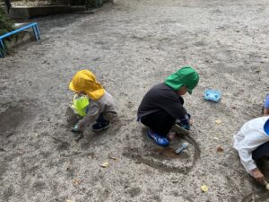 砂場セットを持っていったので、砂を入れたり、ダンゴムシを見つけてそっと容器に入れて観察したりと、夢中になって遊ぶ姿が見られました🐜✨
