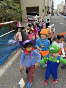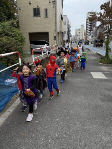 地域の方にご協力をいただき、みんなで地域を回ってお菓子をもらいに行きました🍭