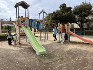 滑り台を1人ですいすいと滑ったり、友達と一緒に滑ることを楽しんでいました🎵滑り台の前で固まっている子どもがいたので話を聞いてみると、少し怖くなってしまったらしく「先生と一緒に滑りたい😢」と誘うかわいらしい姿もありました!