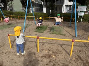 ブランコでは自分でこげるようになった子どもも多く、黄色帽子のお友達ができているのを見ると負けずにブランコをこぐ練習をしていました🔥