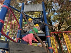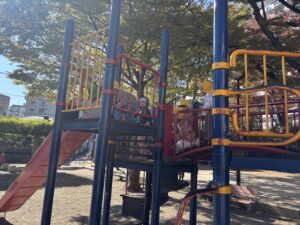 公園では、すみれさんは大型遊具や鉄棒などで遊びました。