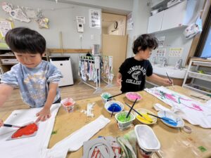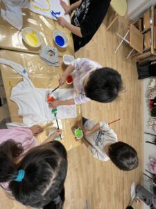 真っ白な服に絵の具を使って、思い思いの絵を描いていきました🎨🖌️