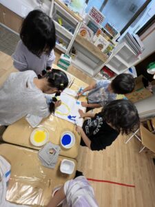 絵の具を塗るたびに「みてー!」「ここ、できたよ!」と嬉しそうに教えてくれる姿が本当に可愛らしく、活動中はずっと賑やかな声が響いていました💕