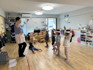 始めて練習をする子は最初「恥ずかしい…」と言いなかなか声を出して演技ができなかったのですが、小さい声で練習を始めてやっていくうちにだんだんと声が出せるようになり楽しく参加することができていました😊