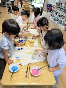 最初は「どんな絵にしようかな〜?」と考え込んでいた子も、絵の具を見ると目がキラキラ✨