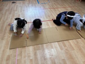 4歳児は、劇遊びをしました。お休み明けで忘れてるかなーと思っていたら、セリフもダンスもよく覚えていてビックリしました!先生よりも先にセリフが出てくる子もいました✨ 去年の発表会のことを思い出すと、みんなの成長がとても感じられます。本番に弱めな4歳児さんですが、子どもたちを信じて、あと2週間楽しく進めていきたいと思います!お楽しみにー!😊