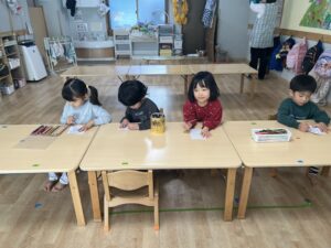 最後は、ゆったり机上遊びで色塗り🖍️🎨