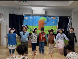 子どもたちも「明後日本番!」と楽しみもあり緊張もありな様子💓4歳児さんにお客さんになってもらい劇が始まるとドキドキしながらも役になりきって演じました!