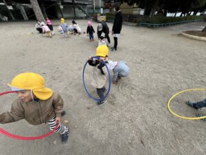 フラフープでは、みんなで連結して電車ごっこ🚃💨