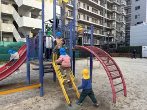 冬はちょっと寒い公園ですが、子どもたちはたくさん体を動かして元気いっぱい遊んでいました😊