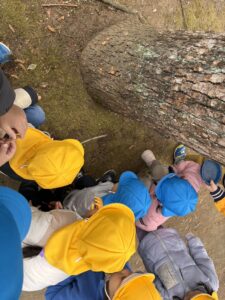 切り株がある場所では葉っぱや石を集めてジュース作りです🍹「先生飲みにきてー!」と言われ行ってみると『石のごつごつジュース』がありました!どうやって飲もうか考えていると「今持ち上げるから待ってて!」とみんなで協力して切り株を持ち上げようとしている姿が可愛かったです😊💕