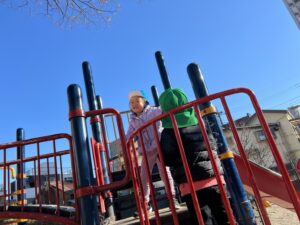 公園に着くと、ちょうど滑り台が空いていたので、まずは滑り台で遊びました🛝💕
