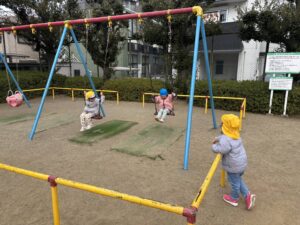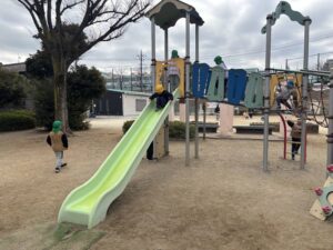 子どもたちも体力がついて、遠い公園なのに、あっという間に到着!🏃 早速遊具で遊び始めました!