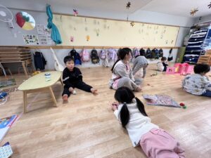 「おなかすいた〜🤤💭」の声が♪みんなでお片付けをしていると、お散歩に行っていたお友達がちょうど帰ってきました🚶♂️🌈