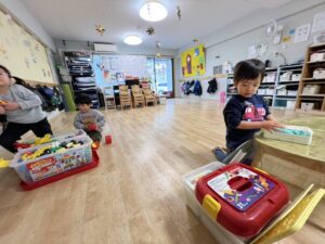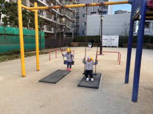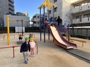 日陰は少し寒さを感じましたが、「全然大丈夫だよ!」と元気いっぱいの子どもたち。寒さに負けず、思い思いに遊び始めました。