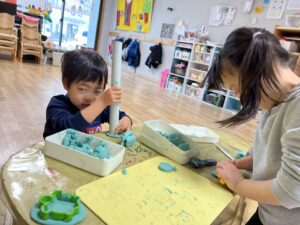 室内では、ニューブロックと粘土あそびをしました🧱✨