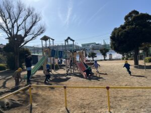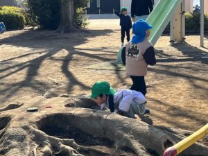 公園に着くと、さっそく元気いっぱい遊び始める子どもたち😆