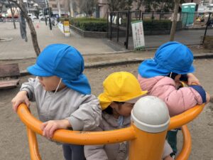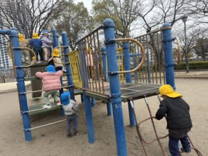 公園に着くとすぐに「一緒にやろう!」とお友達を誘って滑り台へ💨