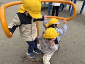 ガタガタ揺れる遊具では、自分で揺らしてみたり、お友達と協力して動かしてみたり…!