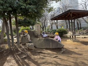 石に登ってみたり、水が溜まっていく様子を楽しんだりと、自然の面白さをたっぷり感じていました🌊