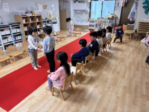 子どもたちは少しずつ流れを覚えてきており、自分の出番が近づくと先生の顔を見て「次ぼくの番だよ!」と期待がこもった表情を見せてくるのがとても可愛らしく、やる気いっぱいの様子が伝わってきました🥰