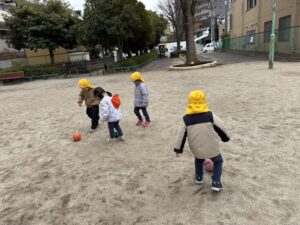 ボール遊びでは、お友達や保育者と一緒に蹴ったり⚽️✨ 投げたりして、たくさん身体を動かして遊びました😊🎵