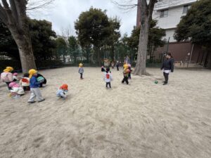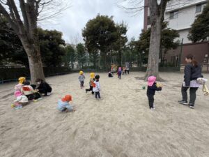 3歳児さんは、たんぽぽ組さんともも組さんと一緒にロータリーの森公園に行きました♪