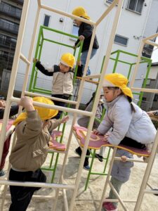 公園に着くと一目散にジャングルジムで遊び出す子ども達!