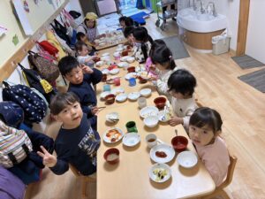 小さいお友だちと同じテーブルで食べることが嬉しかったようで、笑顔いっぱいの時間となりました。