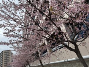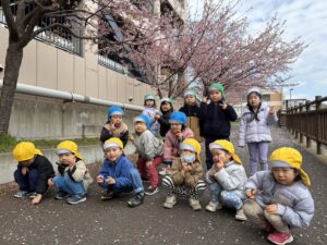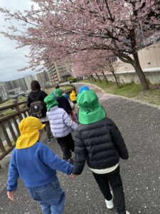 芝川に着くと桜並木があり、綺麗に咲いていてテンションもあがるすみれぐみさん!
