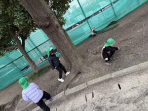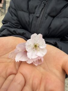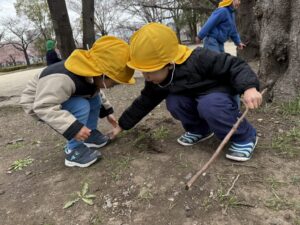 公園では、引き続き桜の花弁を探し道端を見て回ったり、