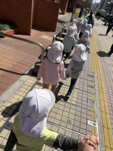 帰り道では、1歳児さんから「手をつなぎたい!」と声を掛けられ、嬉しそうに手をつないで歩く姿が見られました。