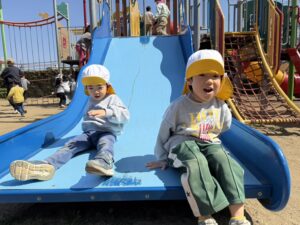 遊具でもお友達と一緒に滑り台をひたすら滑ったり