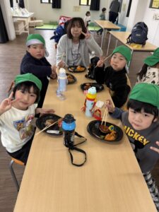 ゆったりと食べながらも、「早くまた遊びたい!」と元気いっぱいの子どもたちでした😊